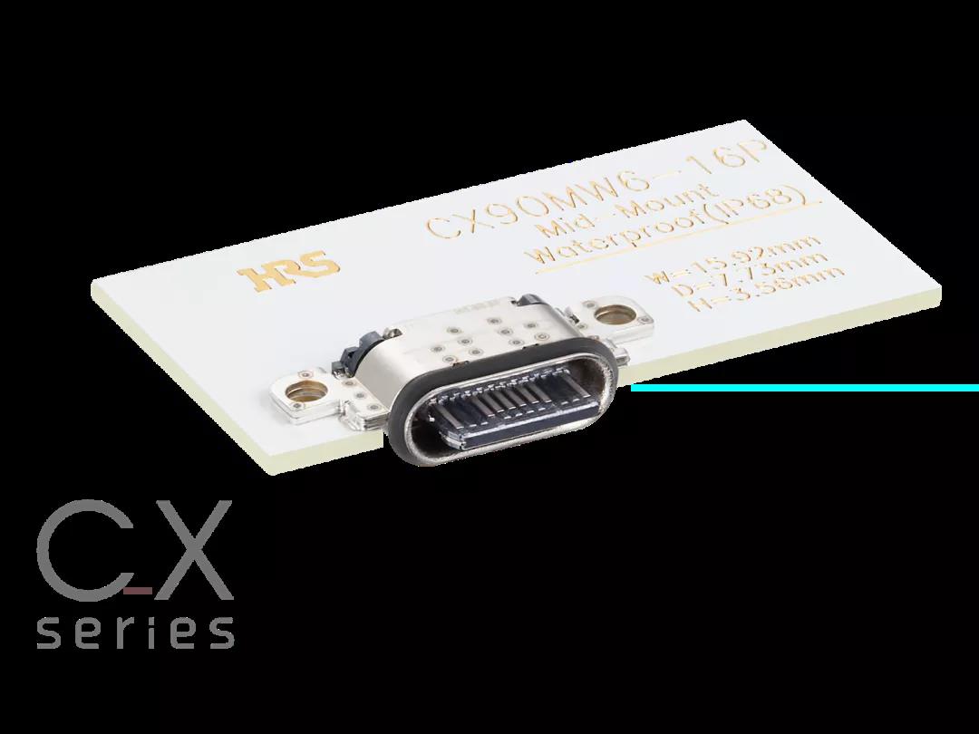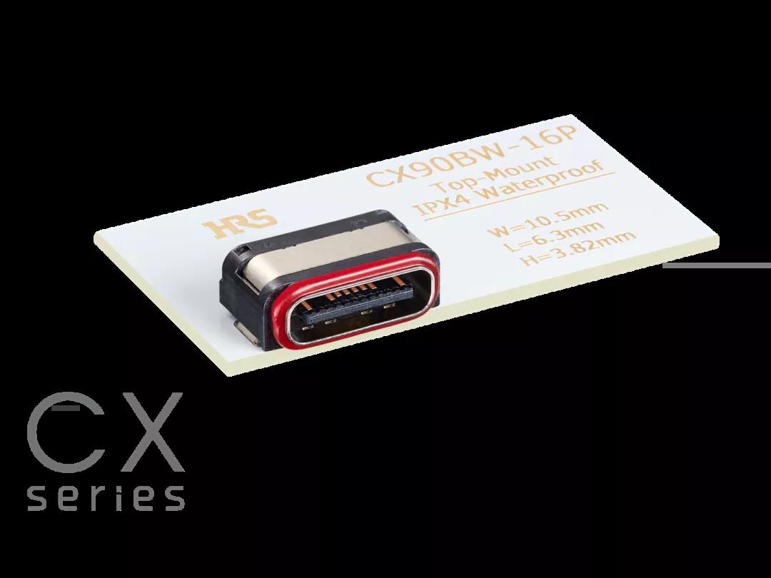 1广濑电机为Type-C连接器CX系列开发出了一种新插座,本次发布的是支持IPX4防水的板上式16芯 “CX90BW-16P”。
